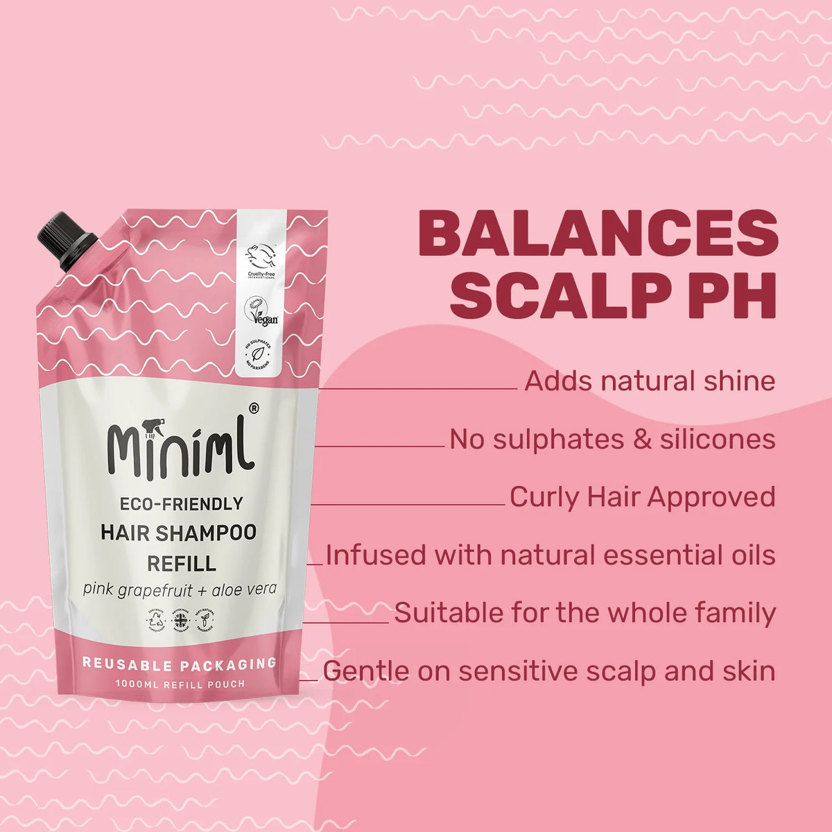 Miniml Shampoo Refill Pouch 1 Litre - Pink Grapefruit & Aloe Vera