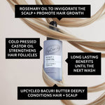 BENEFITS: Suitable for all hair types. Castor oil strengthens follicles & promotes healthy growth, & rosemary oil balances sebum levels to prevent buildup of oils.