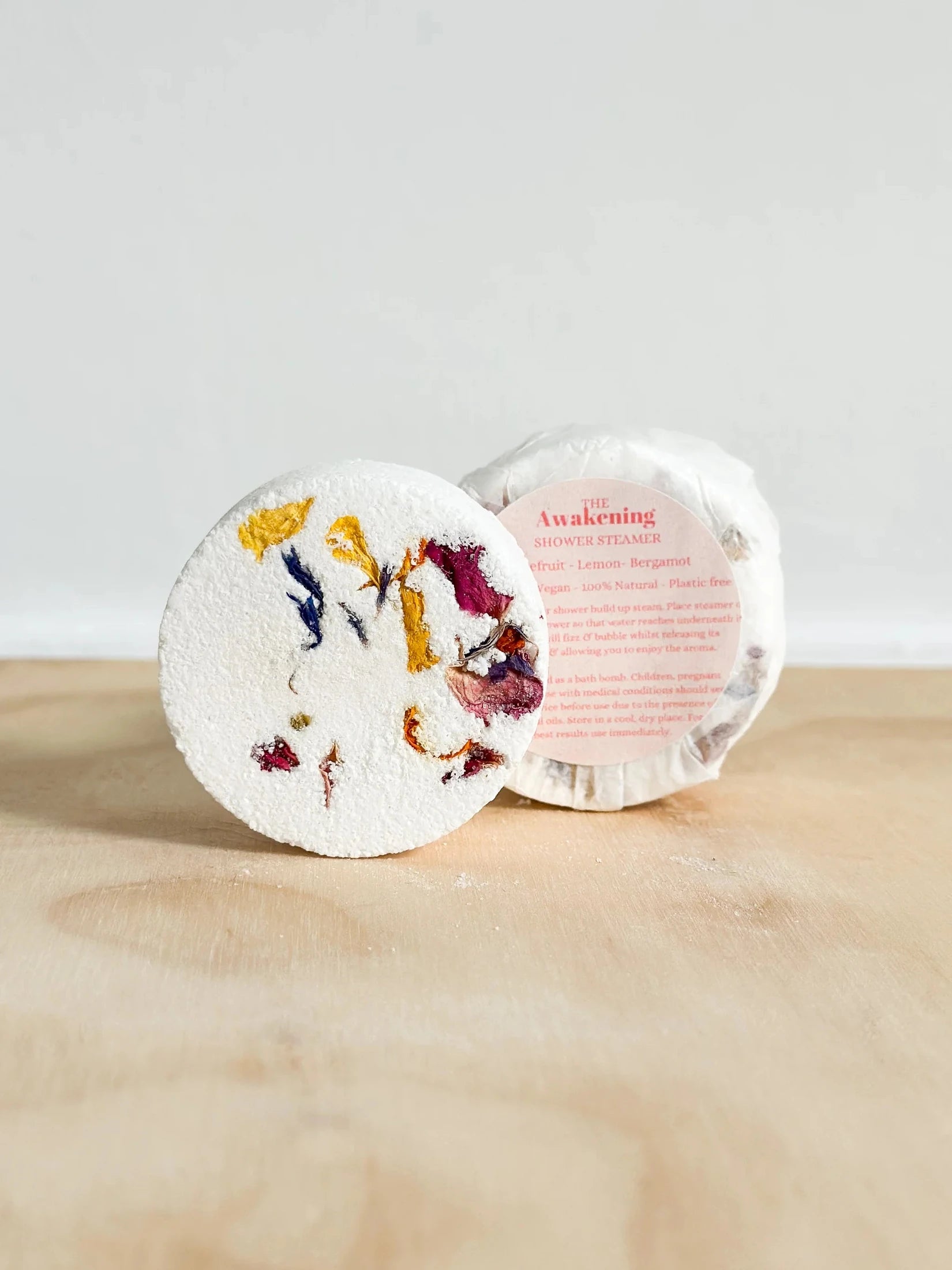 Packed full of aromatherapy essential oils which release in your shower for that ultimate spa at home feeling. These floral topped steamers contain organic Grapefruit, Bergamot and Lemon essential oils. Grapefruit helps to balance mood, decrease blood pressure, and relieve stress, whilst bergamot has the ability to reduce inflammation, lower cholesterol levels, and increase positive mood. Finally the lemon essential oil works to fight exhaustion, helps with depression and defend the body against harmful pathogens and promotes detoxification