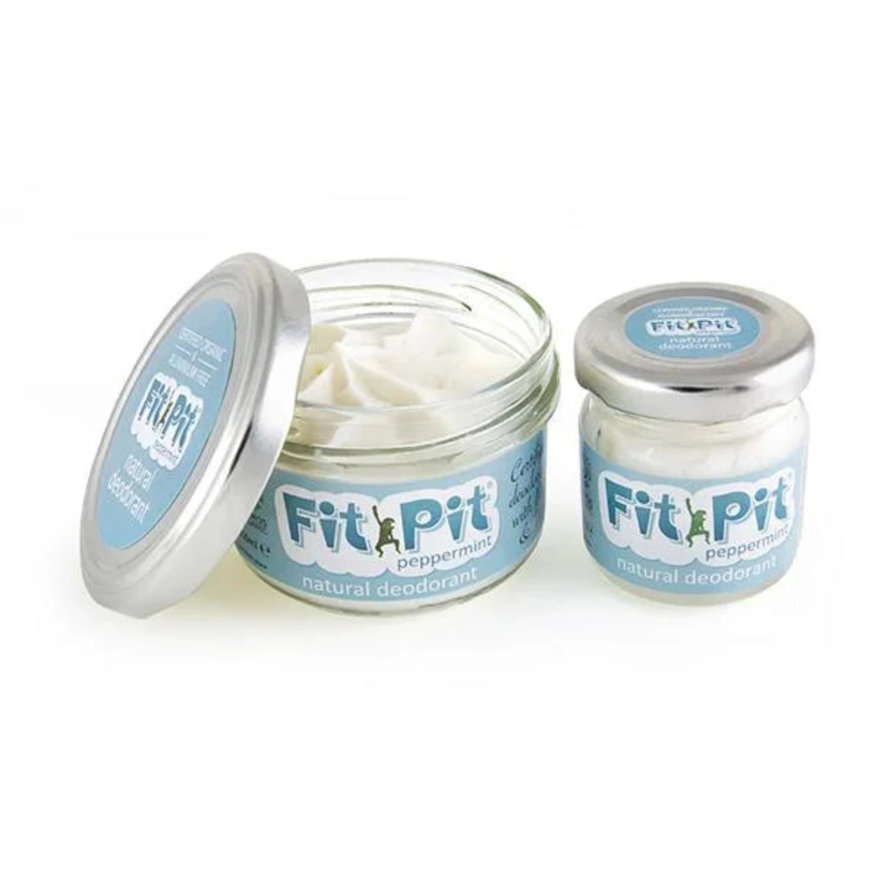 Vegan, aluminium-free, and 75% organic, Fit Pit Peppermint is packaged in eco-friendly glass jars, offering a sustainable, skin-kind alternative to conventional deodorants.