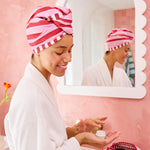Reduce drying time with our Cherry Bomb Waffle Style Hair Wrap. Made from super absorbent suede material, it quickly extracts moisture while remaining lightweight for easy use. Perfect for those rushed mornings or last-minute party prep. Say goodbye to long drying times and hello to fabulous hair.